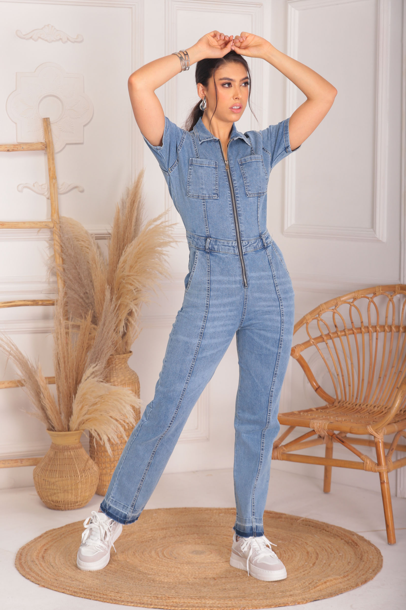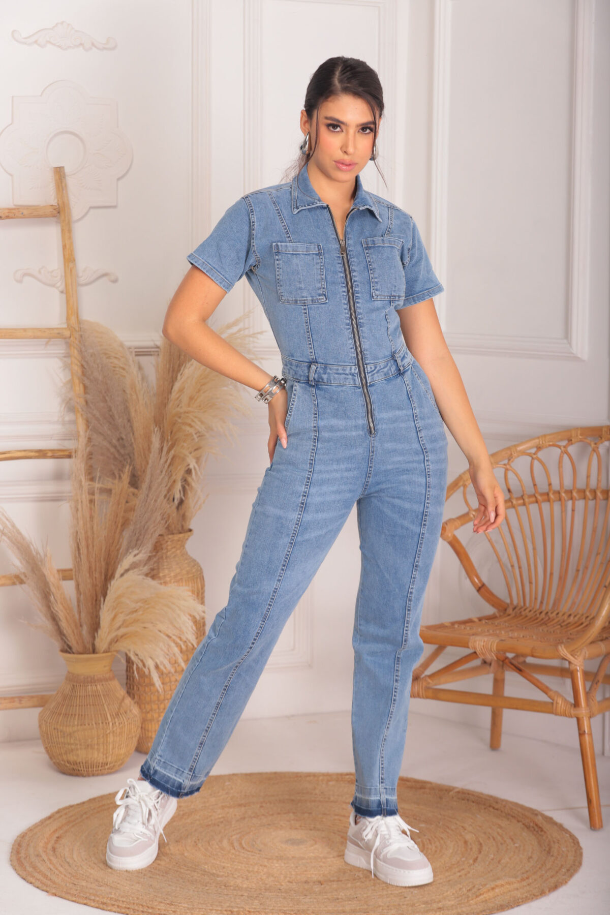 ENTERIZO JEAN STRECH CIERRE DELANTERO MANGA CORTA