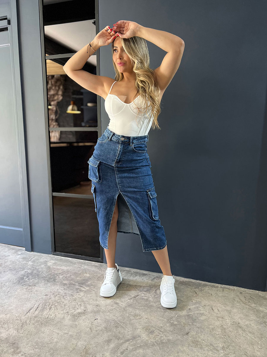 FALDA LARGA DE JEAN CARGO REDIAL PARIS PREMIUM DENIM COLLECTION